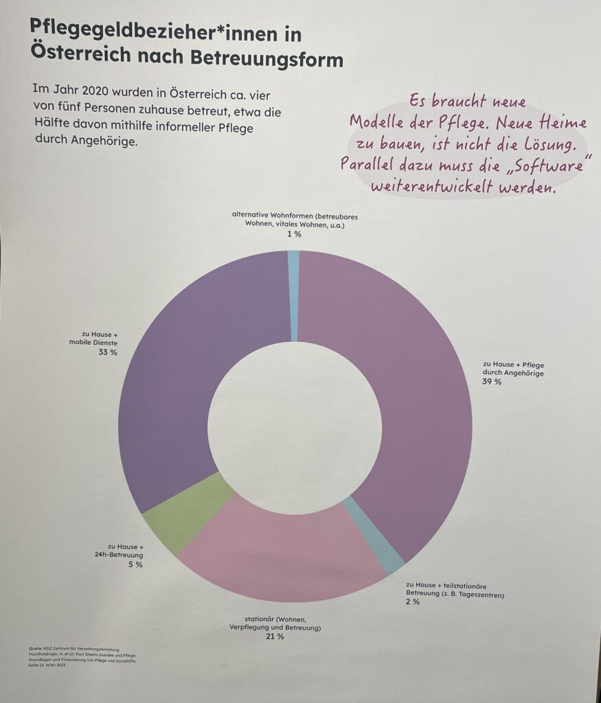 Jeder Mensch wohnt, wie auch immer. Wohnen ist daher ein Grundbedürfnis. Unsere Wohnvorstellungen sind jedoch konservativ, stark vom Leben der Kernfamilie geprägt und auf Dauer ausgerichtet. Veränderungen der Wohnsituation durch äußere oder altersbedingte Umstände werden in Österreich nicht nur sehr spät bedacht, sondern oft zur Herausforderung am letzten Drücker. Gängige Maßnahmen wie barrierefreier Umbau, Treppenlifte und Notfallknöpfe stehen oft vor dem Senior*innen- oder Pflegeheim, das als letzte Station wahrgenommen wird. Alternative Wohnformen existieren, sind aber kaum verbreitet.